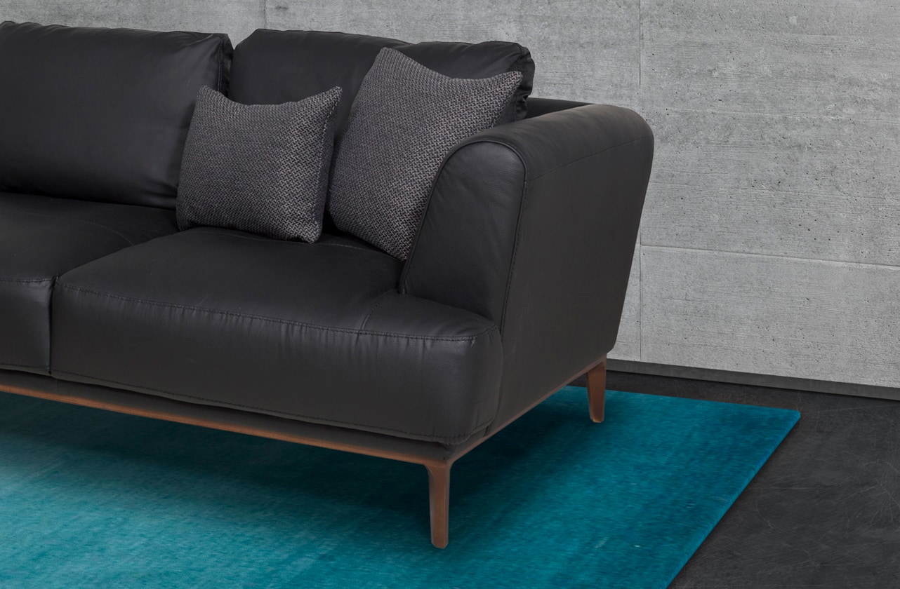 Sofá Derecho Boal Upper Shell elaborado en piel y vinil color negro con patas de madera en color café y cuatro cojines color negro y gris; El contemporáneo y lujoso modelo Shell, podrá formar el diseño de mueble que prefieras e incluir en tu hogar esa versatilidad que buscas y que puede adaptarse a tu espacio.