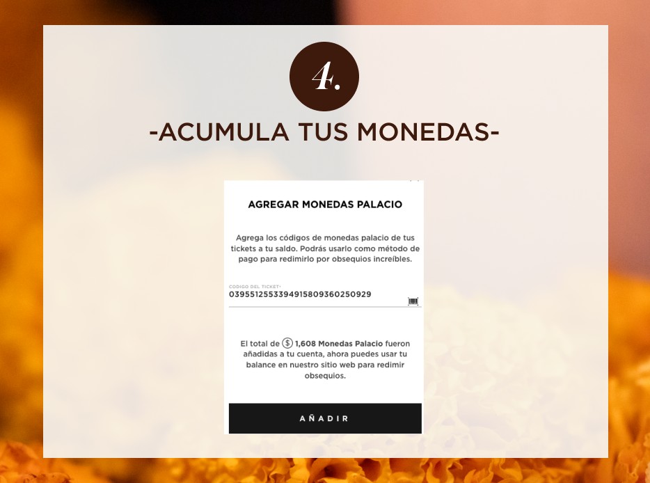 Puedes canjear tus Monedas Palacio en línea y en las tiendas físicas participantes, respetando las fechas de cada ubicación.