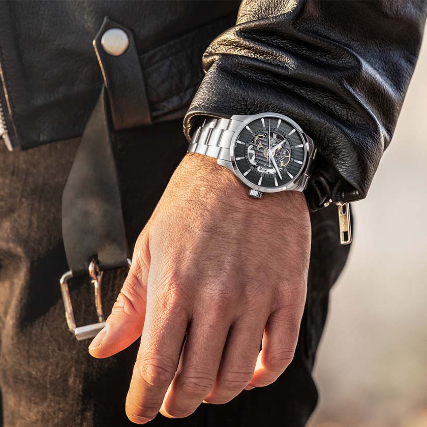 Reloj Mido de la familia Multifort y subfamilia Skeleton; caja, bisel y extensible tipo brazalete en acero inoxidable, el reloj muestra una fuerte influencia arquitectónica. Una característica de esta colección está inspirada en el puente del puerto de Sídney, con barras de Ginebra que adornan su carátula única de color antracita. Descripción del Producto: El Reloj Mido Multifort Skeleton Hombre es una obra maestra que fusiona la elegancia con la ingeniería avanzada. Este reloj, parte de la icónica colección Multifort, ofrece un diseño innovador y sofisticado, ideal para el hombre que aprecia tanto la estética como la funcionalidad. La influencia arquitectónica en su diseño y los detalles únicos lo convierten en una pieza distintiva y de gran impacto. Características Principales: Diseño Arquitectónico: Inspirado en el puente del puerto de Sídney, el Reloj Mido Multifort Skeleton Hombre presenta un diseño arquitectónicamente significativo. Las barras de Ginebra en la carátula aportan un toque elegante y distintivo, haciendo eco de la estructura icónica del puente. Materiales Premium: La caja, el bisel y el extensible tipo brazalete están elaborados en acero inoxidable, proporcionando durabilidad y resistencia. Este material no solo asegura una larga vida útil del reloj, sino que también le confiere un acabado sofisticado y pulido. Carátula Skeleton: La carátula del reloj es una característica destacada, con un diseño Skeleton que permite ver el movimiento interno. El color antracita de la carátula añade profundidad y contraste, mientras que las barras de Ginebra refuerzan el diseño arquitectónico. Movimiento Preciso: El reloj cuenta con un mecanismo de alta precisión que garantiza un rendimiento confiable y exacto. El diseño Skeleton no solo es estéticamente agradable, sino que también permite apreciar la complejidad y el arte de la maquinaria interna. Extensible Tipo Brazalete: El extensible tipo brazalete en acero inoxidable combina comodidad y estilo. Su diseño asegura un ajuste perfecto y una gran durabilidad, manteniendo el reloj en su lugar mientras complementa cualquier atuendo. Detalles Elegantes: Los detalles de diseño, como las barras de Ginebra en la carátula, añaden un toque de sofisticación y refinamiento. Estos elementos contribuyen al carácter distintivo del reloj, haciéndolo un accesorio imprescindible para quienes buscan destacar. Beneficios del Producto: Estilo y Distinción: El Reloj Mido Multifort Skeleton Hombre ofrece un diseño único y elegante que destaca en cualquier ocasión. Su inspiración arquitectónica y su carátula Skeleton lo convierten en una pieza de conversación y en una declaración de estilo. Durabilidad y Resistencia: Fabricado con acero inoxidable de alta calidad, el reloj es resistente a los impactos y al desgaste diario. La combinación de materiales premium garantiza una larga vida útil y un rendimiento constante. Precisión y Confiabilidad: El mecanismo interno del reloj asegura una medición precisa del tiempo, ofreciendo una alta fiabilidad. La carátula Skeleton permite observar el movimiento interno, añadiendo un toque de ingenio y sofisticación. Versatilidad: El diseño del reloj es lo suficientemente versátil como para complementar tanto atuendos formales como informales.